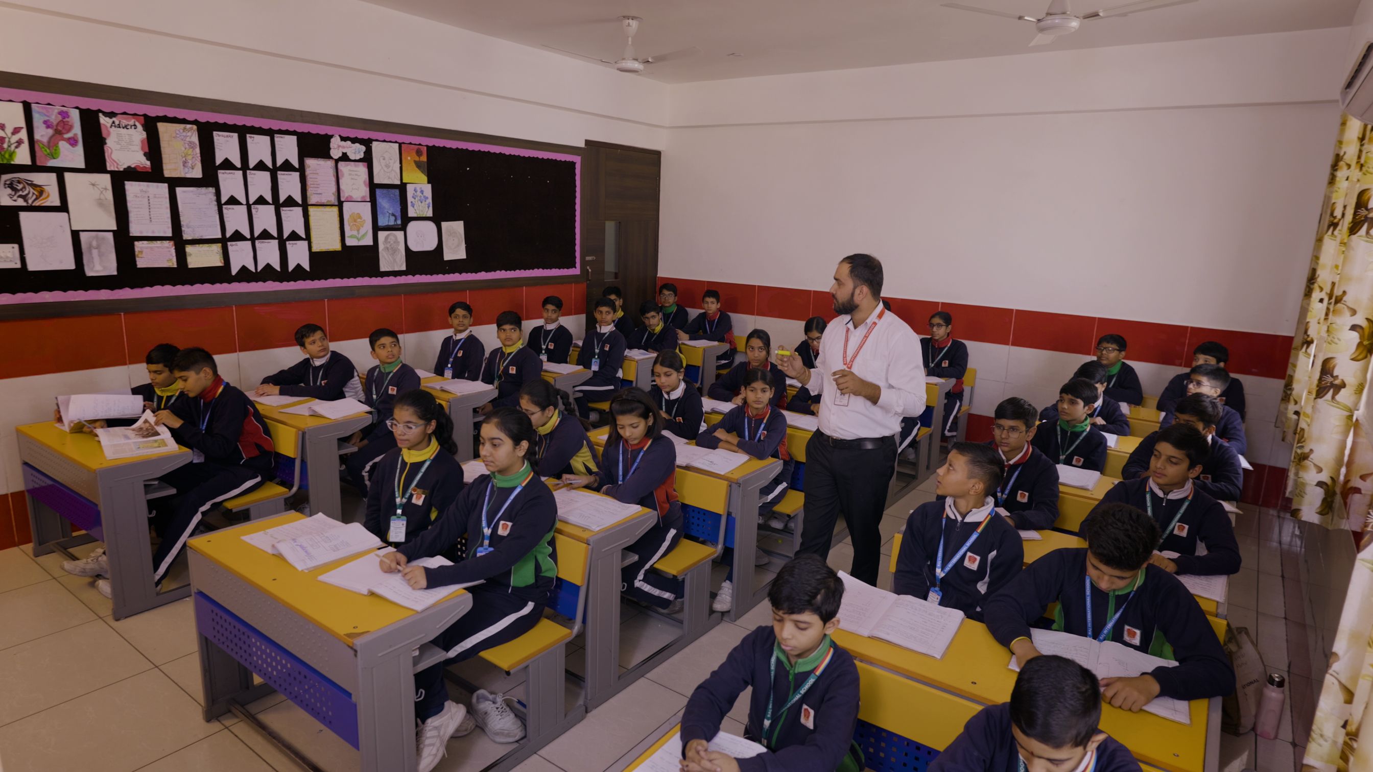 It goes without saying that classroom learning experiences play a very important role in students' academic development. Classroom to a student is like a second world. Our spacious innovatively arranged classrooms attract the attention of every child coming to school. Activity-based learning and highly personalized care and attention become the learner's paradise along with a healthy student-teacher ratio. Fully air-conditioned classrooms equipped with student-friendly furniture, Smart Boards with digital content, and internet connection enhance the joy of learning.